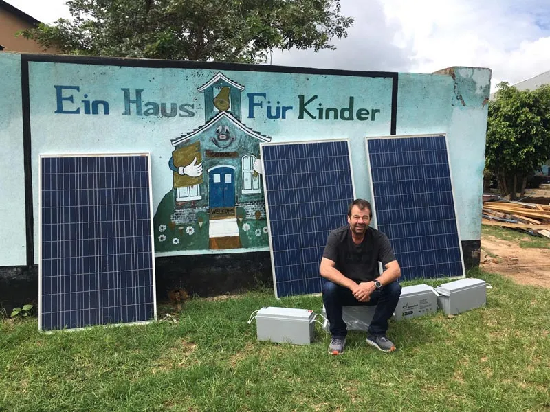 Für unseren Schulbetrieb ist Strom allerdings unverzichtbar. Um die Versorgung sicherzustellen, haben wir Photovoltaik-Module beschafft, die auf dem Dach der Schule installiert werden. So können wir z.B. die lückenlose Kühlung der Lebensmittel für die täglichen Mahlzeiten der Kinder garantieren oder die Wasserpumpen unseres neuen Brunnens betreiben.